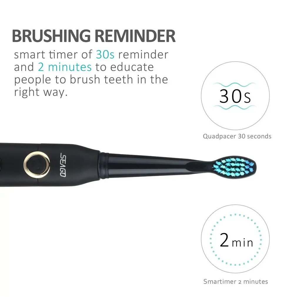 Seago SG-507 Electric Toothbrush Smart Timer Sonic Brush USB Rechargeable Waterproof Tooth Brush for Adult